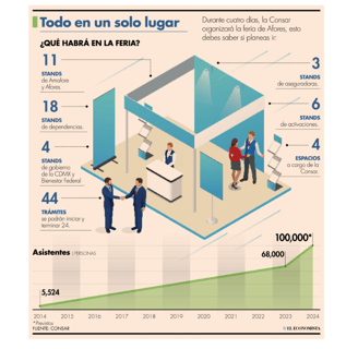 ara esta edición, la Comisión Nacional del Sistema de Ahorro para el Retiro (Consar), institución que organiza el evento, informó que esperan más de 100,000 asistentes a la feria; superando por unos 30,000 asistentes la edición del año pasado.